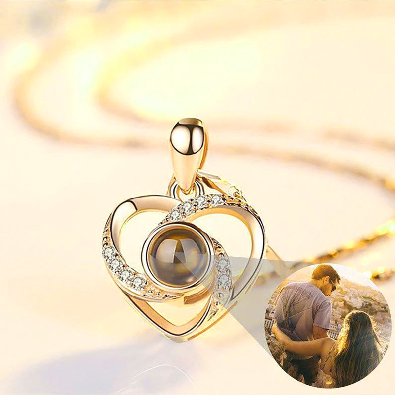 Personalized Multi-Diamond Heart Photo Projector Necklace