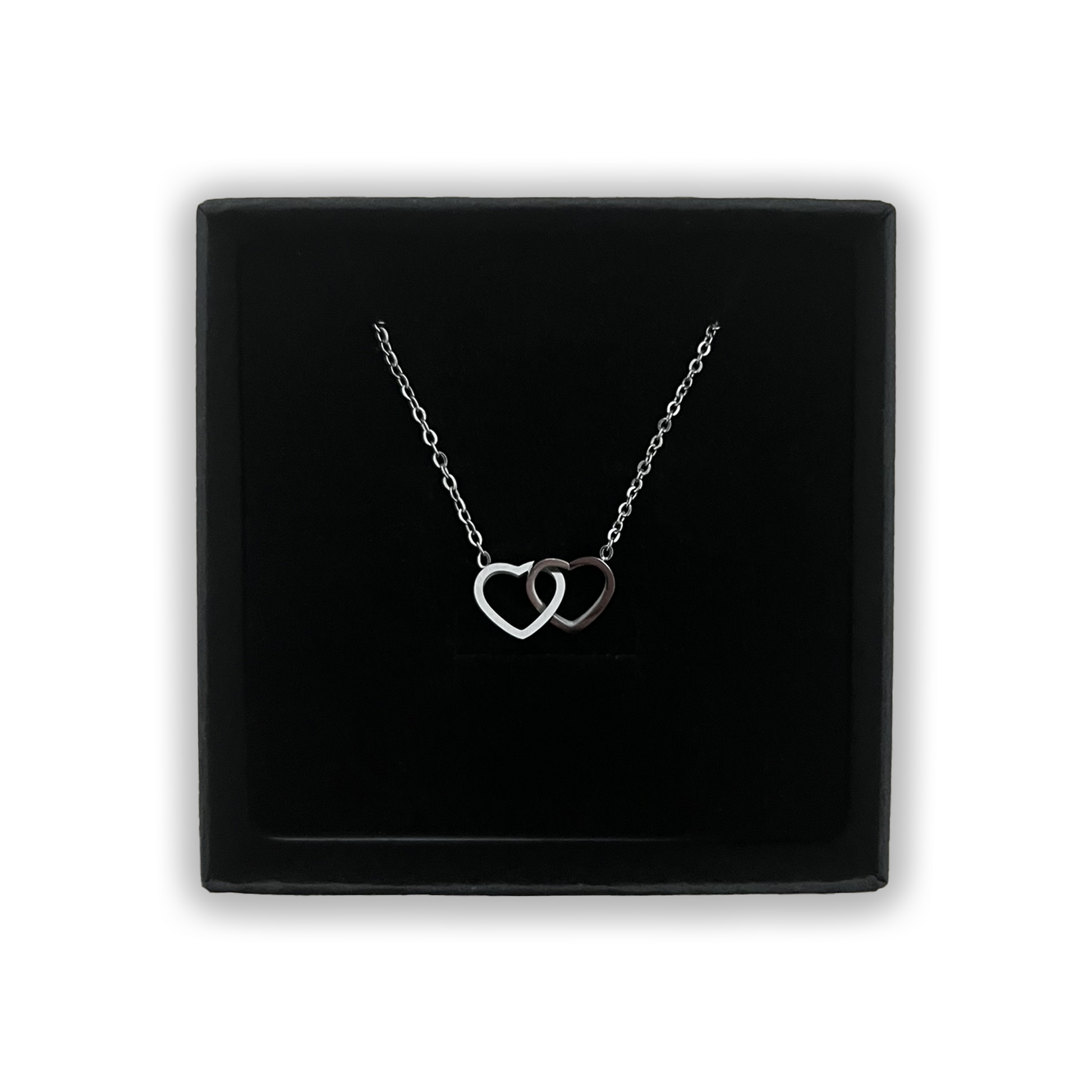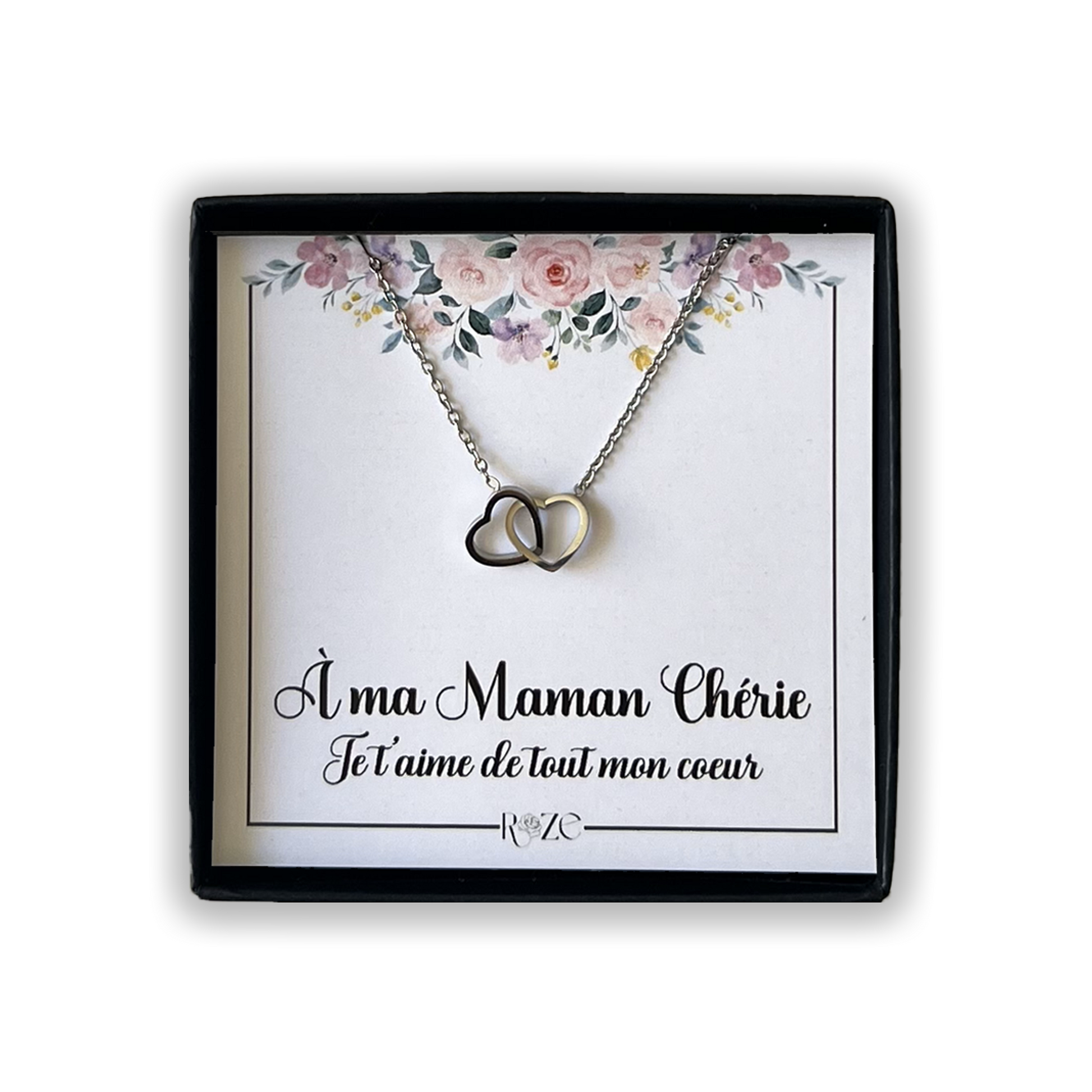 Ne cherchez plus ! Notre élégant collier avec ses deux petits coeurs entrelacés et présenté dans une jolie boîte cadeau est l'idée parfaite. Ce collier artisanal, avec son design épuré, est un symbole d'amour, d'union et de reconnaissance. Son allure unique en fait un cadeau particulièrement attentionné.